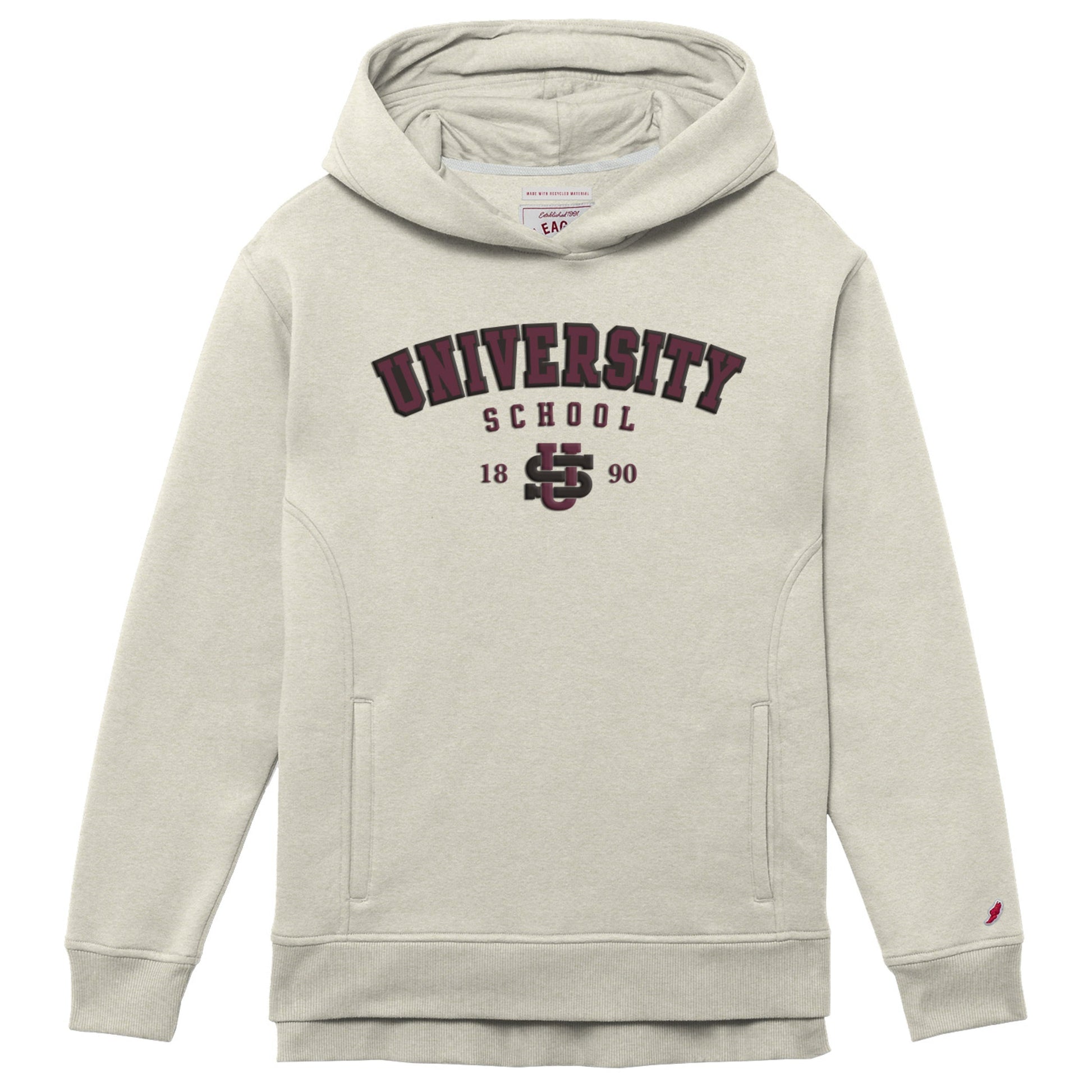 League PFW210 1991 Women's Hood with "University School" and the Interlocking US logo embroidered on center chest.