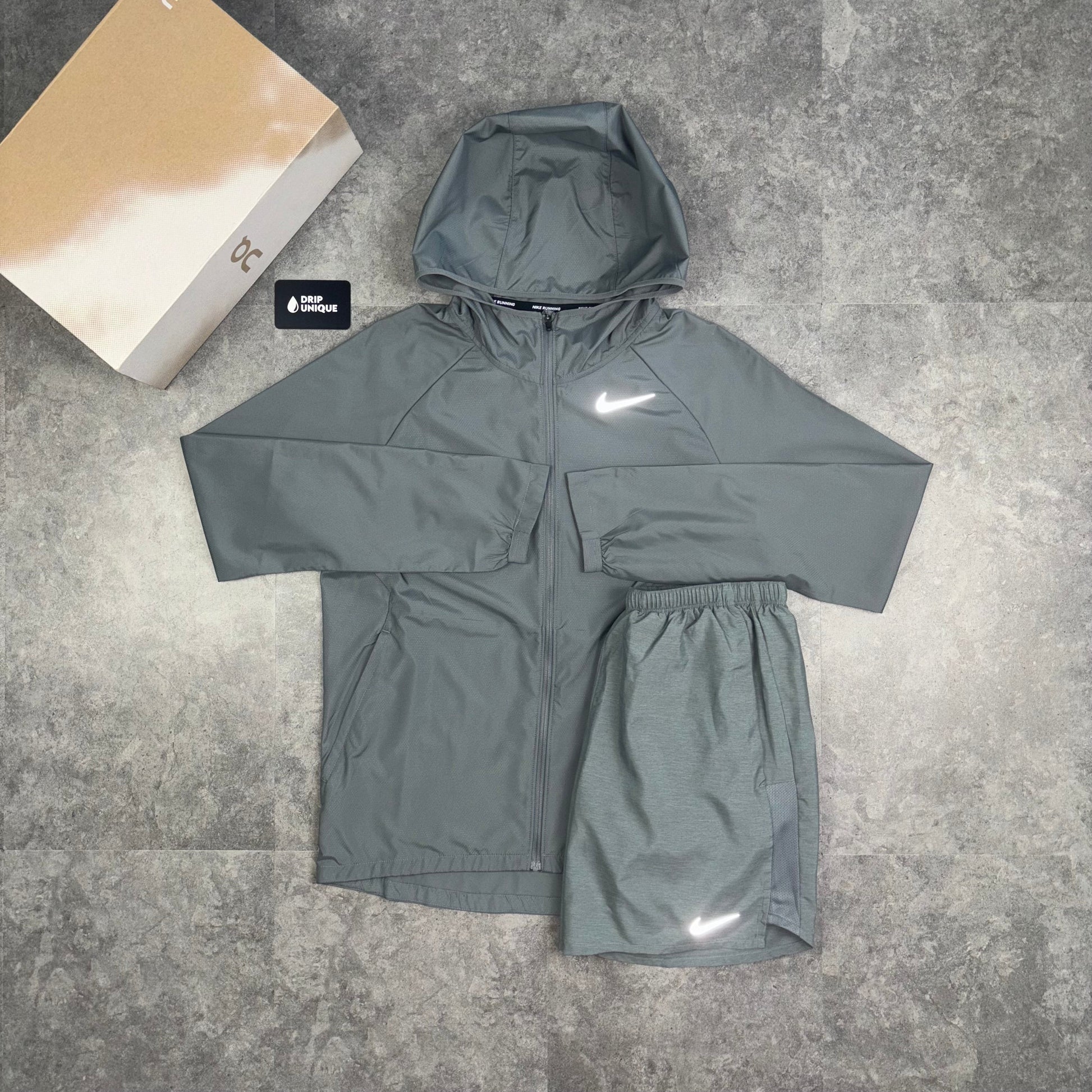 Nike Essential Windrunner Jacket Grey & Grey Challenger Shorts Set