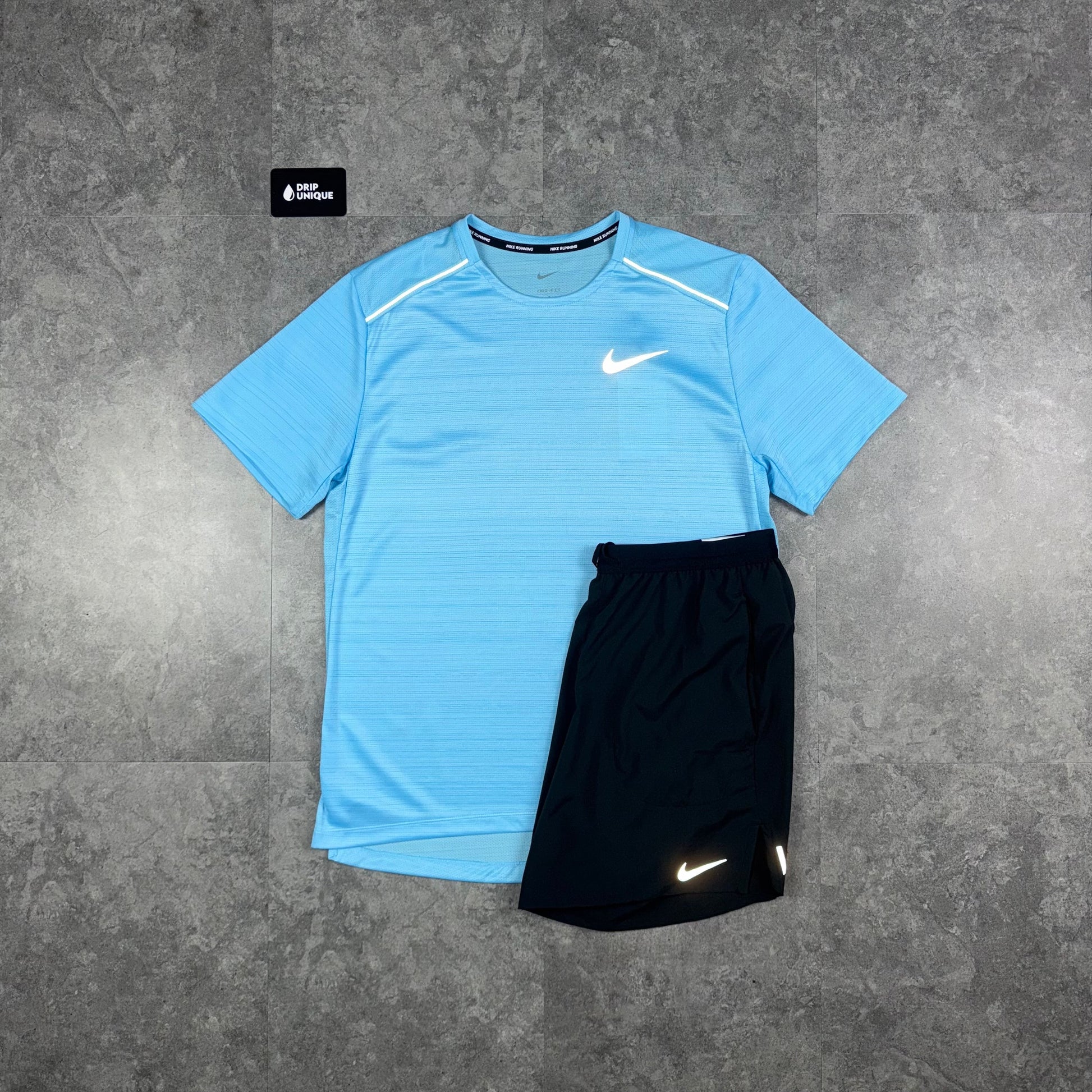 Nike Miler T-Shirt Aquarius Blue & Black Flex Stride Shorts Set
