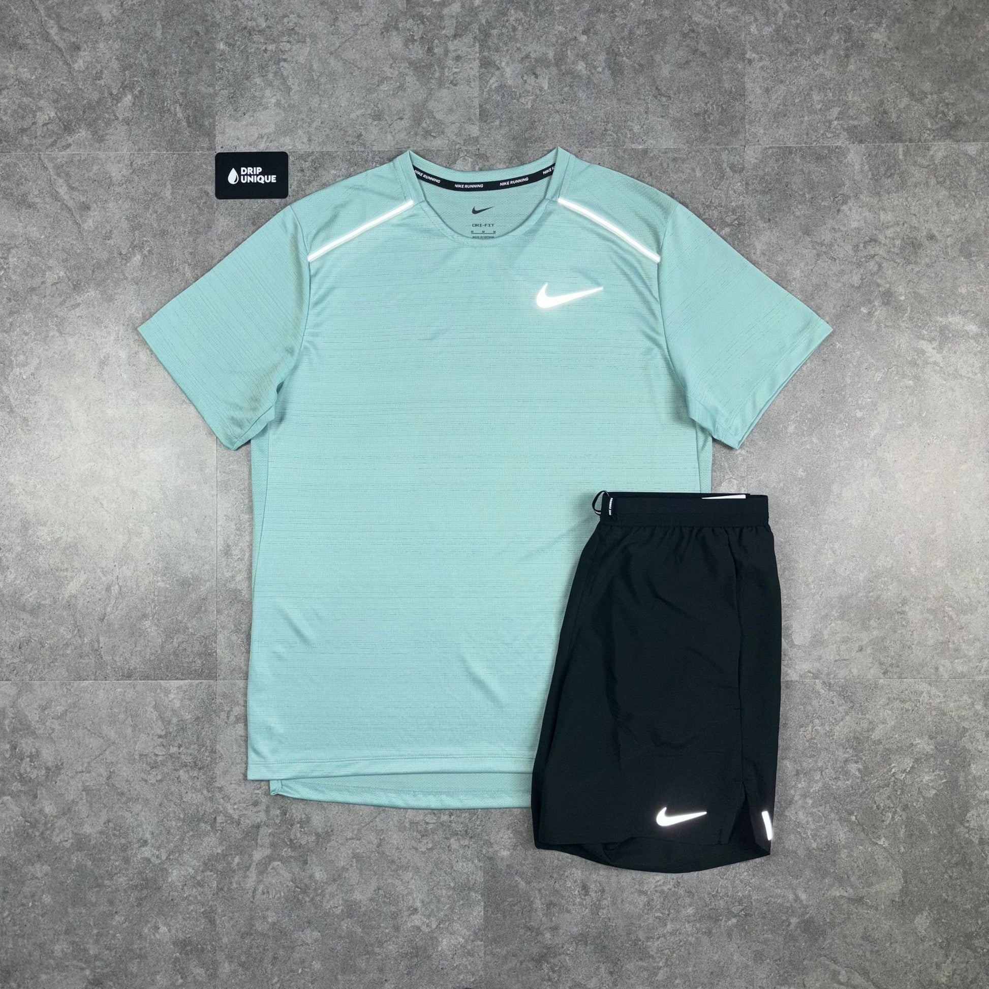 Nike Miler T-Shirt Mineral & Black Flex Stride Shorts Set