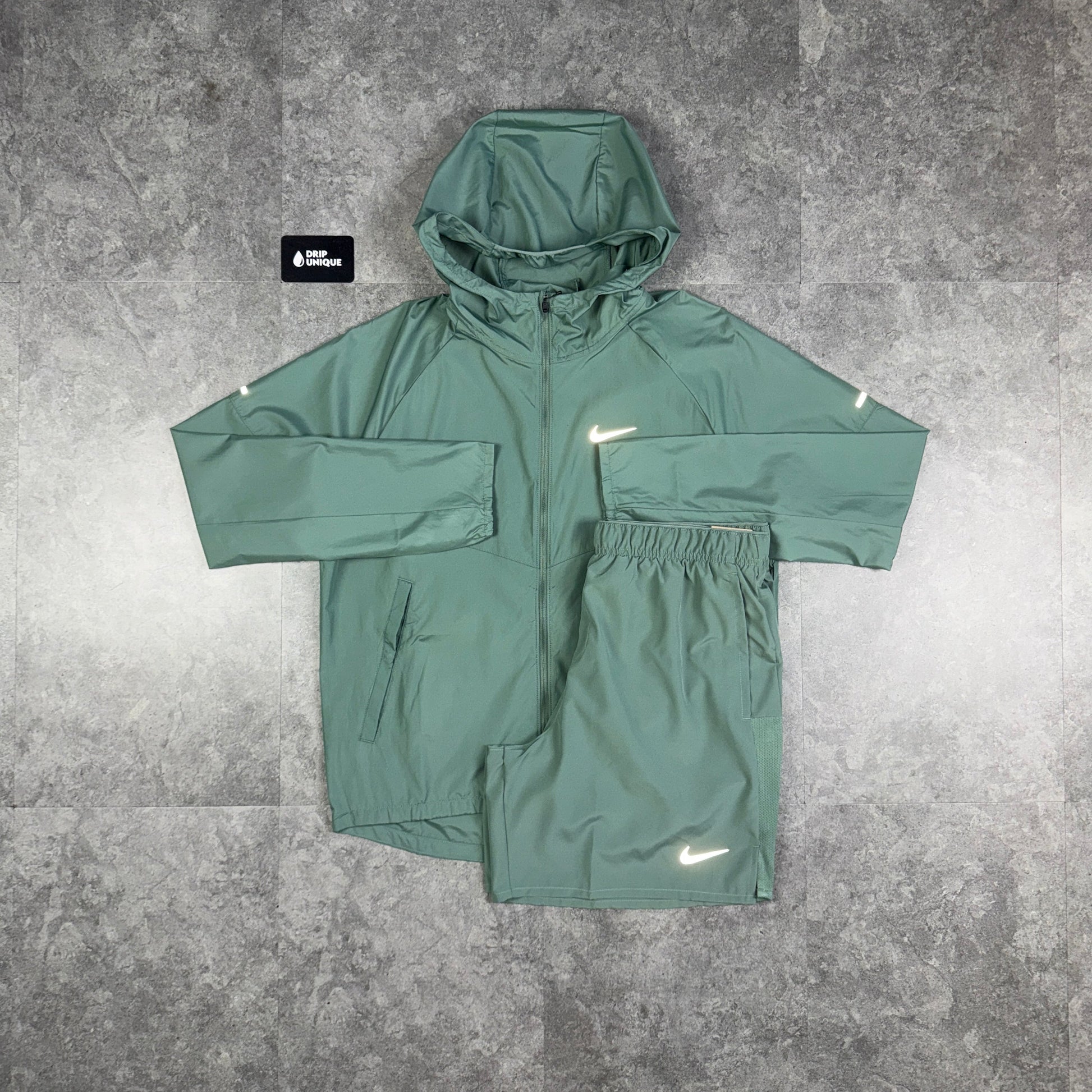 Nike Repel Miler Windrunner Jacket Clay Green & Green Challenger Shorts Set