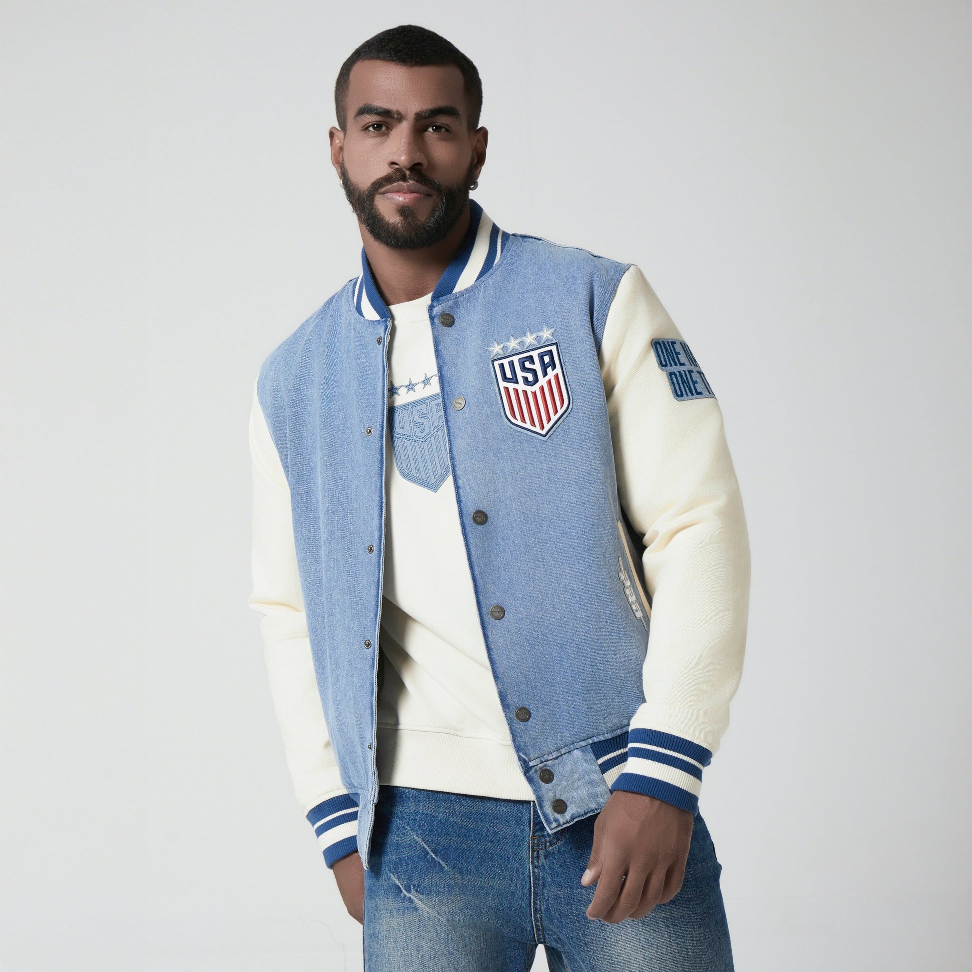 Bold style meets modern fandom in the Varsity Blues Collection, a premium lineup designed for the devoted U.S. Soccer fan. Each piece delivers a timeless, vintage-inspired aesthetic that seamlessly blends nostalgia with contemporary streetwear. This classic, bold collection is built for those who make the what what it is.